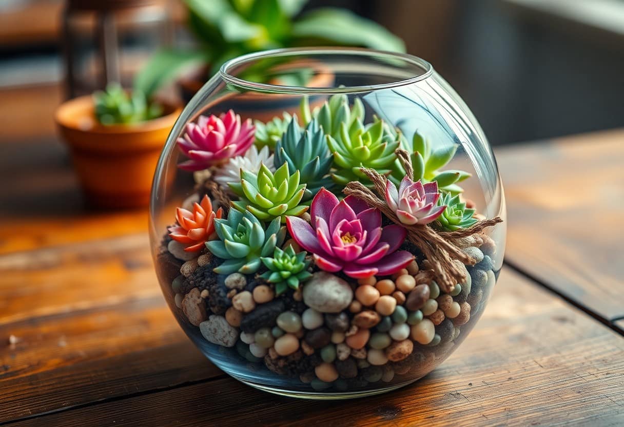 Quando realizzi il tuo terrario, le decorazioni e le personalizzazioni possono trasformare il tuo progetto in un’opera d’arte unica. Scegli elementi che riflettano il tuo stile personale e che valorizzino le piante succulente all’interno. Dalla selezione di ghiaia colorata alla scelta di piccole statue, ogni dettaglio conta per rendere il tuo terrario un vero capolavoro. Sentiti libero di sperimentare e di giocare con texture e colori!